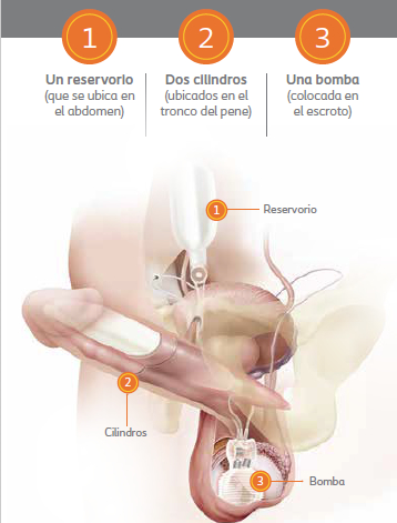 El implante de pene inflable tiene tres partes: